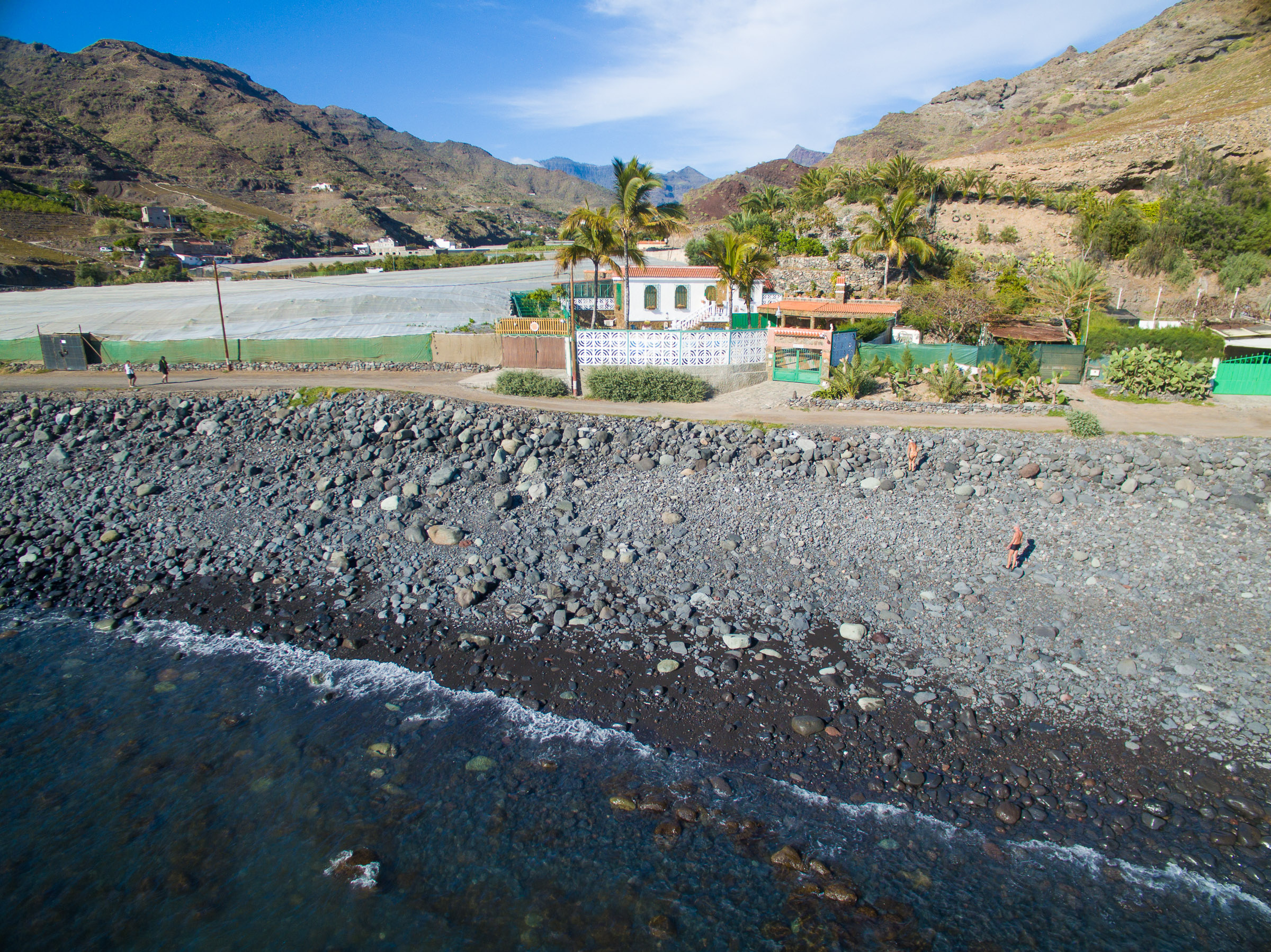 The Barranco de Tasarte is one of the island's most pristine and the whole area around the beach is undeveloped apart from a few houses, a beachfront restaurant and lots of mango and papaya orchards on the valley floor. Check it out on Google Street View