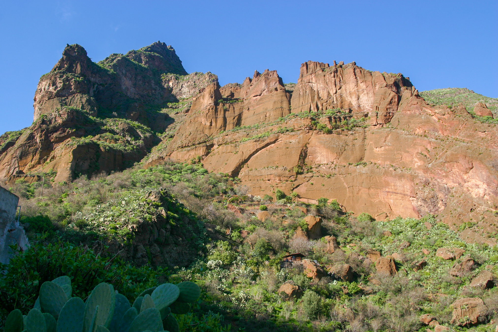 Alex Says: Guayadeque is vertigo-sufferers gateway to the landscapes of central Gran Canaria. You get the monumental cliffs and rocks of the cumbres without steep drop offs.