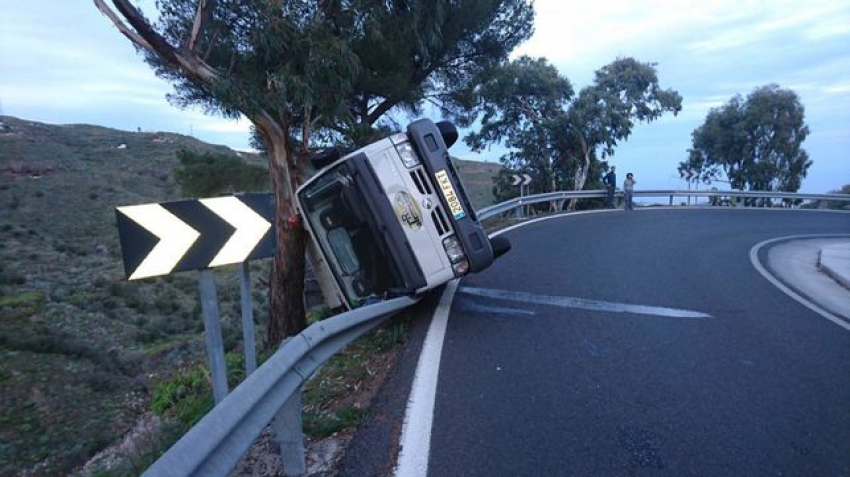 A truck driver tips over in a bend near Valsequillo and "skates" over the railing. When he's about to dive into the steep ravine, two trees stop the truck and the guy walks free... This happened yesterday, january 7. Here are the images and the video: