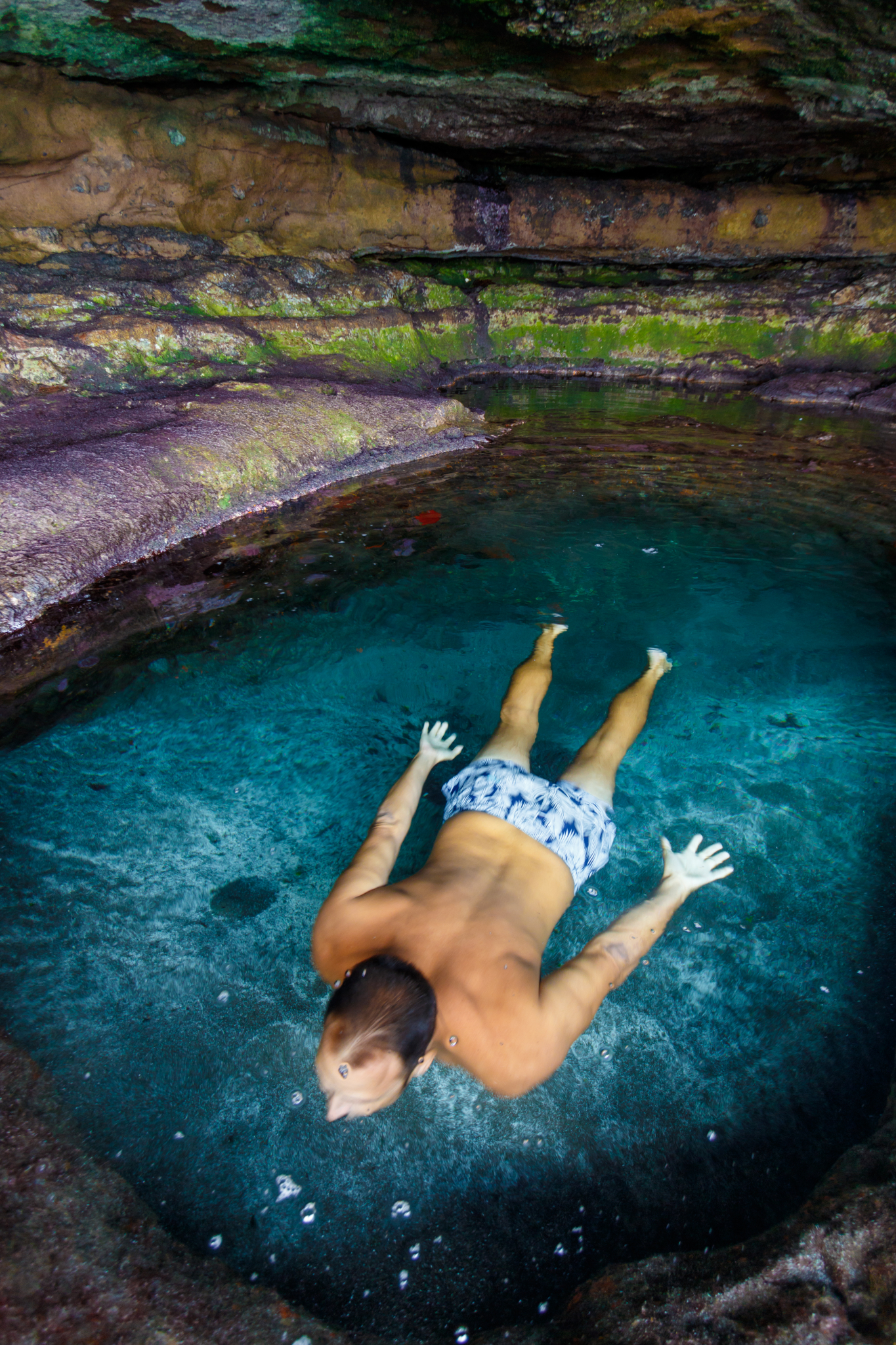 In front of the pool, on the rock shelf, there's another pool teeming with blennies because locals fish off the top of the cliff and drop bread and bait into the pool.